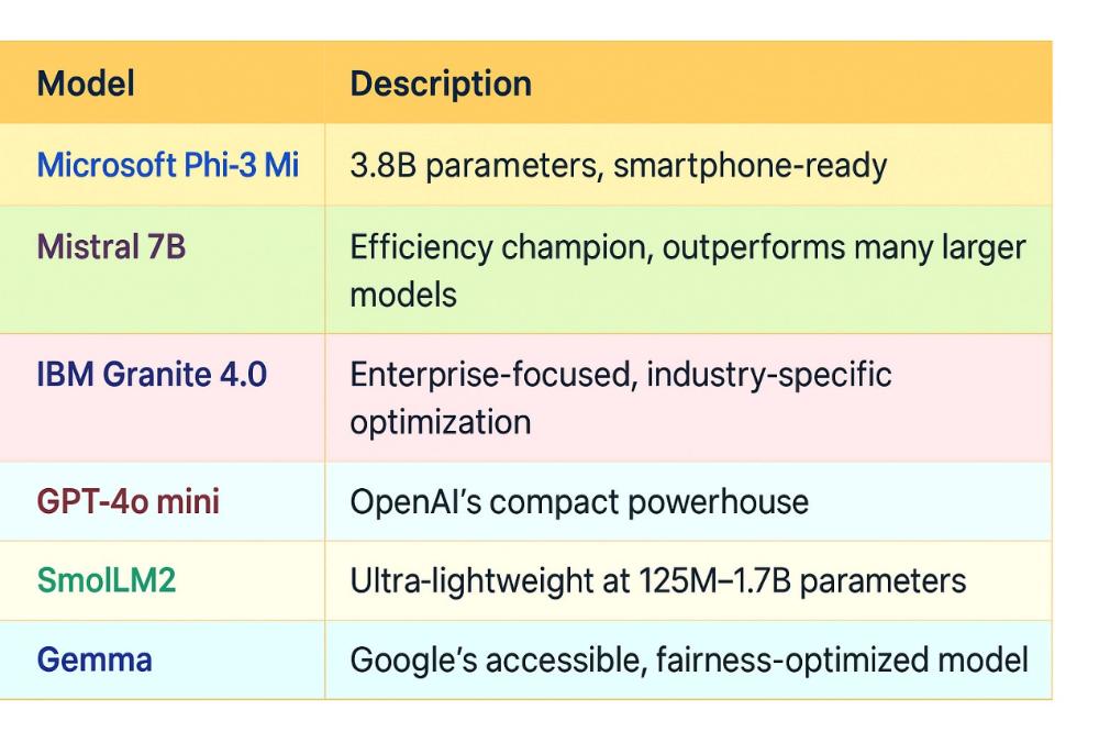 • 参数更少 — 通常少于 30 亿个 参数,使其结构紧凑、重量轻。