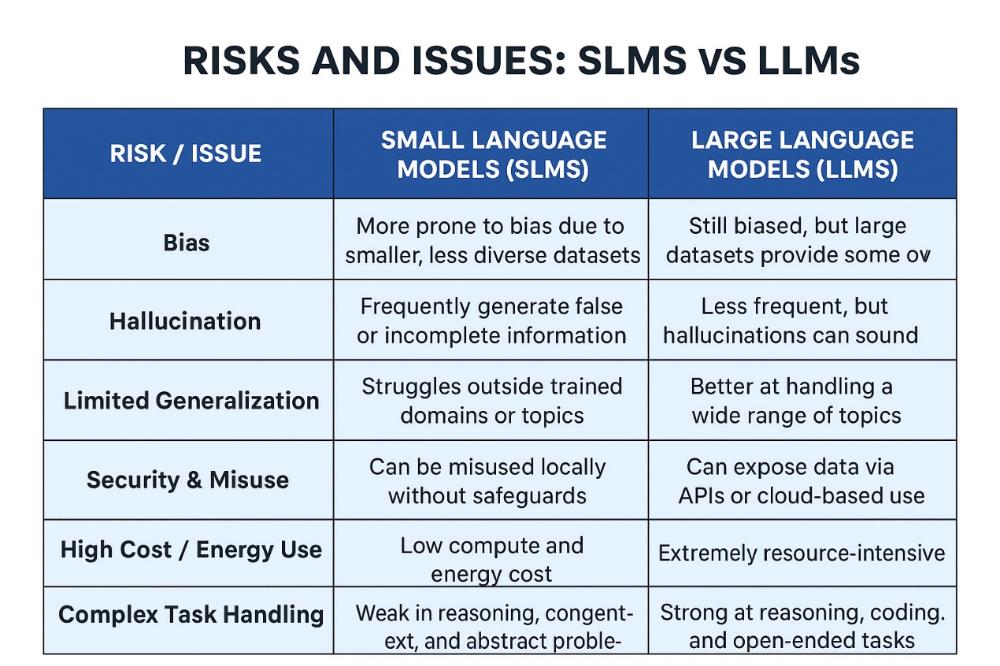 SLM也存在一些 风险 ,下图详细比较了 SLM 和 LLM 的风险。