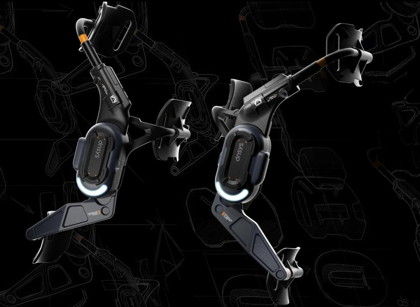 这套外骨骼有两组垫板,可以托住大腿和小腿