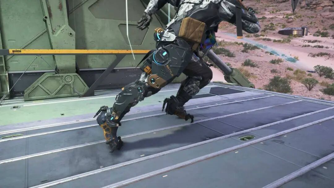 如果你在游戏里把视角拉近,盯着山姆的脚看,就会发现玄机。山姆的外骨骼有着非常完整的脚部结构,那层金属装甲是一直包裹到脚底板,直接踩在地面上的。