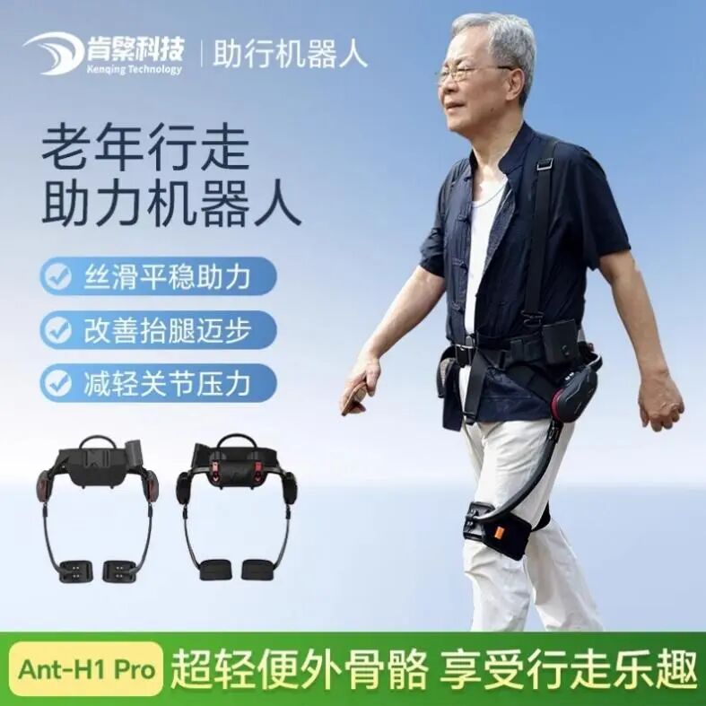 肯綮科技推出的外骨骼机器人是国内外骨骼轻量化产品中的典型代表。今年1月,肯綮科技与泰山文旅集团联合研发的外骨骼设备,在泰山景区首次投入使用,其登山助力外骨骼的自重仅1.8kg,是目前市场中重量最低的外骨骼之一。其专门针对老年人使用的Ant-H1 Pro自重也控制在了2.4kg,目前售价12000元,可在京东、天猫自由购买。