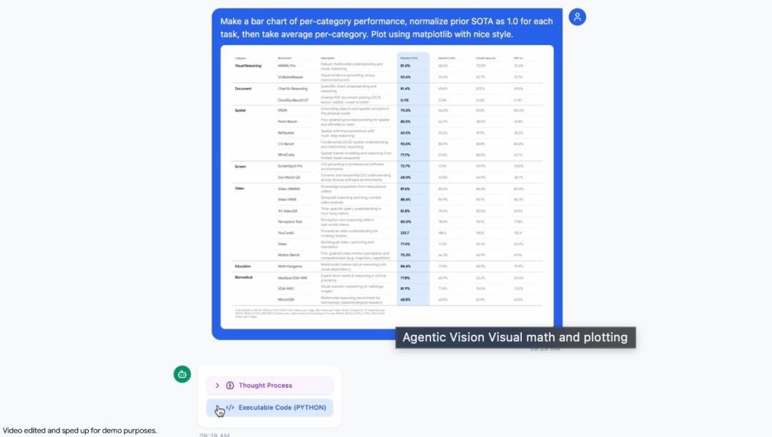 Agentic Vision可以解析高密度表格并执行Python代码来可视化发现。