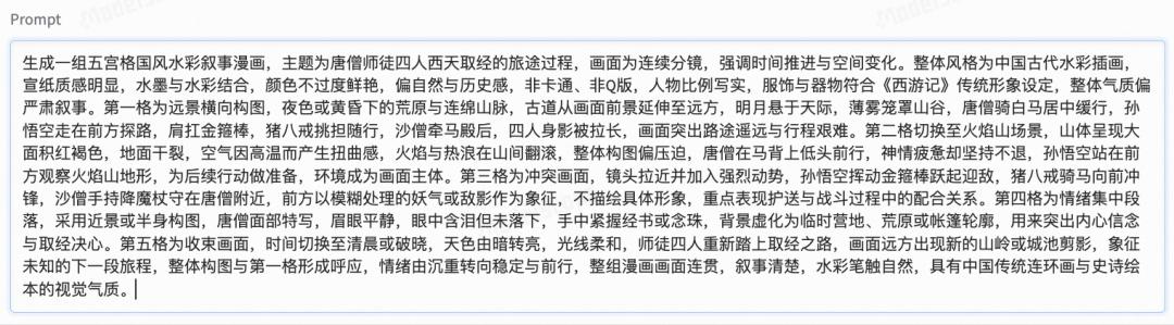 先来道开胃菜,最近水墨风多宫格漫画在网上贼火,我直接反手就是输入一个长达700字,且包含复杂指令的提示词: