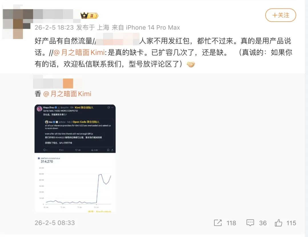 在当前地缘政治和供应链环境下,算力仍是中国 AI 企业的集体软肋;而对用户量突然暴涨的 Kimi 来说,更是实打实的瓶颈。