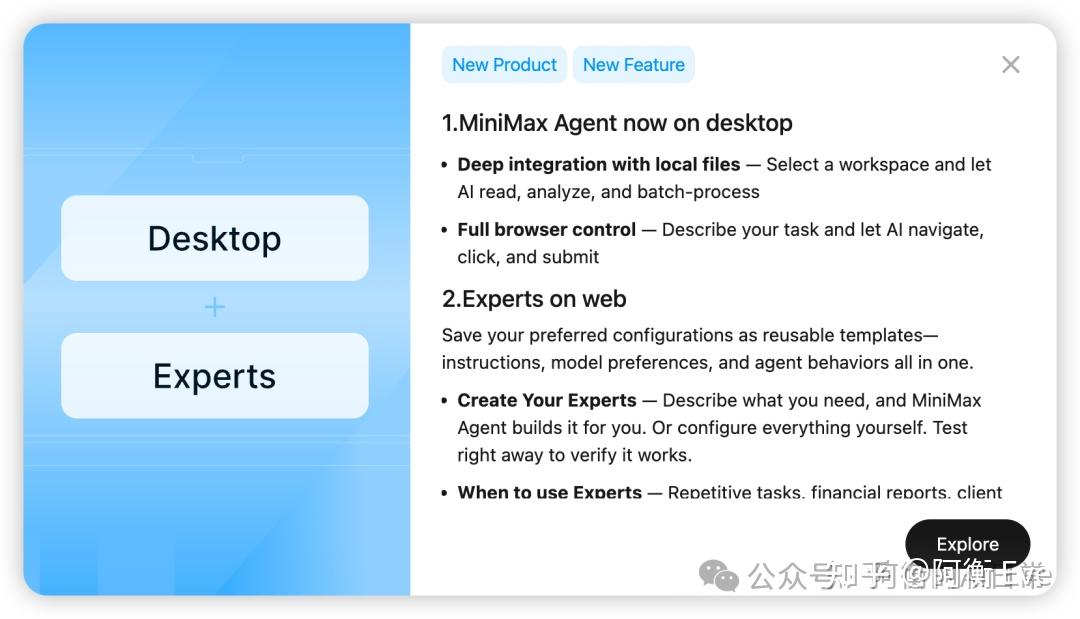 | MiniMax | Expert Agents | 注入知识库 + SOP,打造”专家分身” |