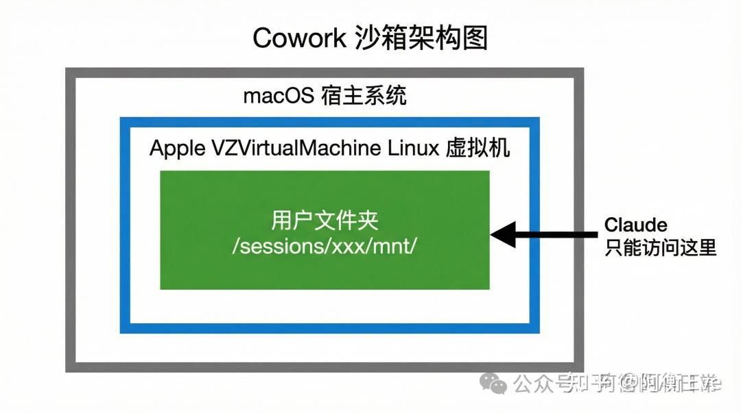 这是操作系统级的隔离,不是简单的目录权限。即使 Claude 想”越狱”,也出不了这个虚拟机。