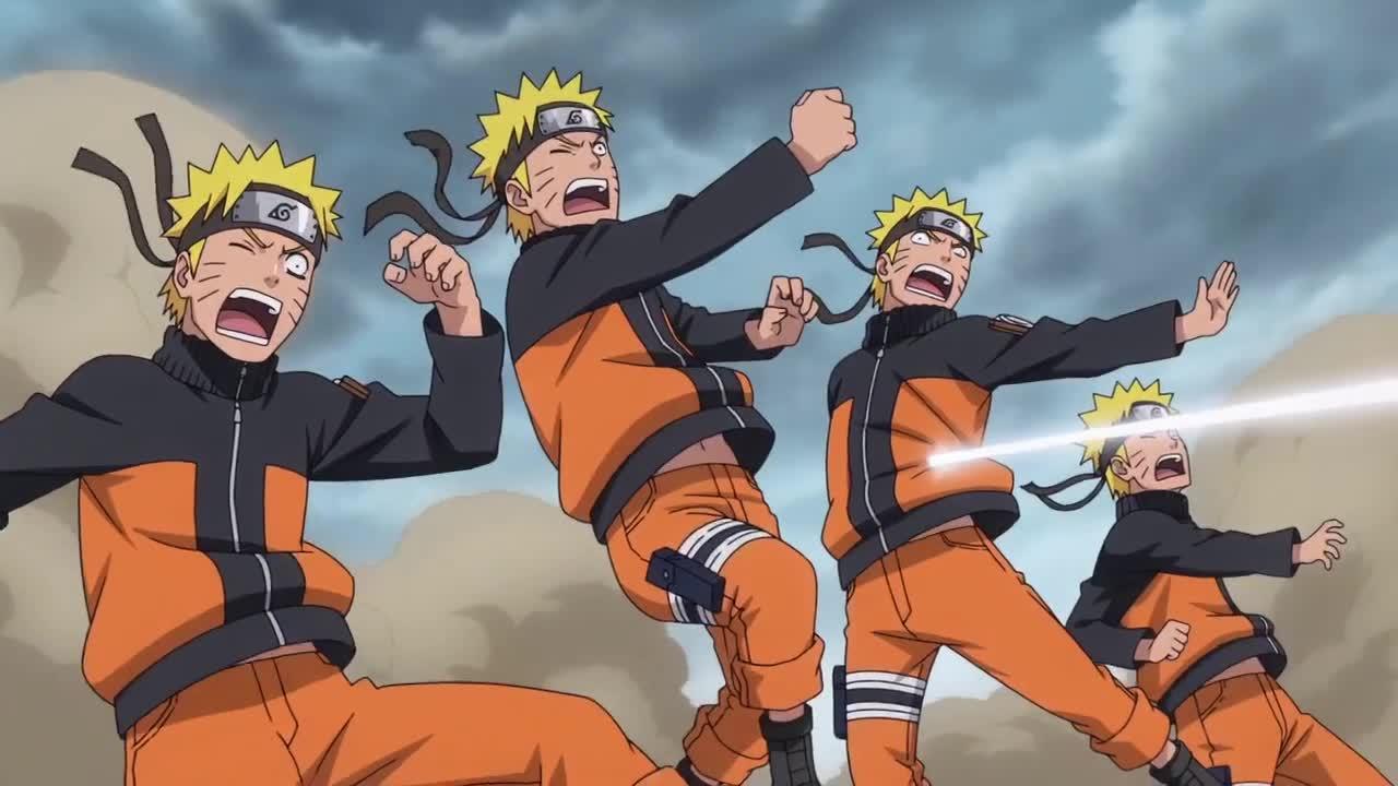 我这里先让 AI 生成了一张鸣人大战路飞的九宫格分镜图片。