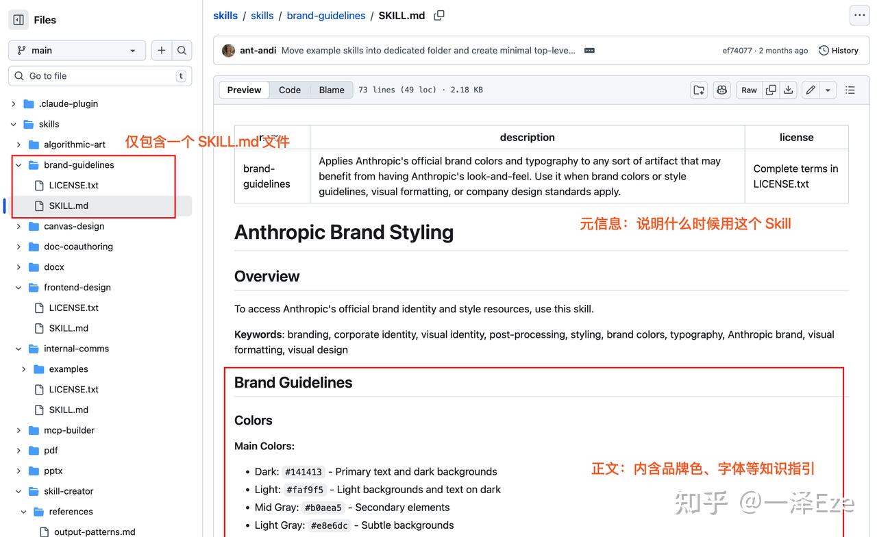 1)最简单的,以 Anthropic 的 brand-guidelines skill 为例