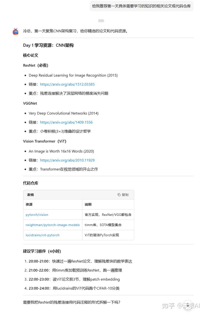 KimiClaw 仔细给我们规划了每一天的学习内容,还推荐了具体的学习资源,如果我们想要更多、更具体的资源推荐,直接告诉它就好。