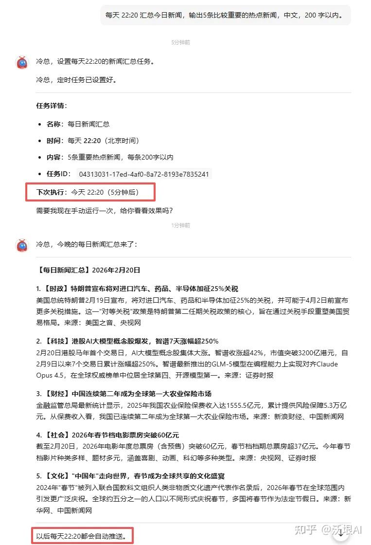 我们只需要设置一次,KimiClaw 就会每天定时完成任务:
