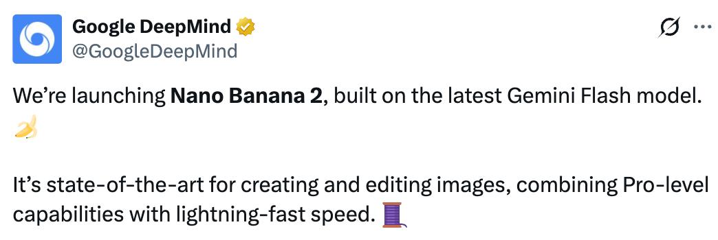 谷歌官宣Nano Banana 2发布