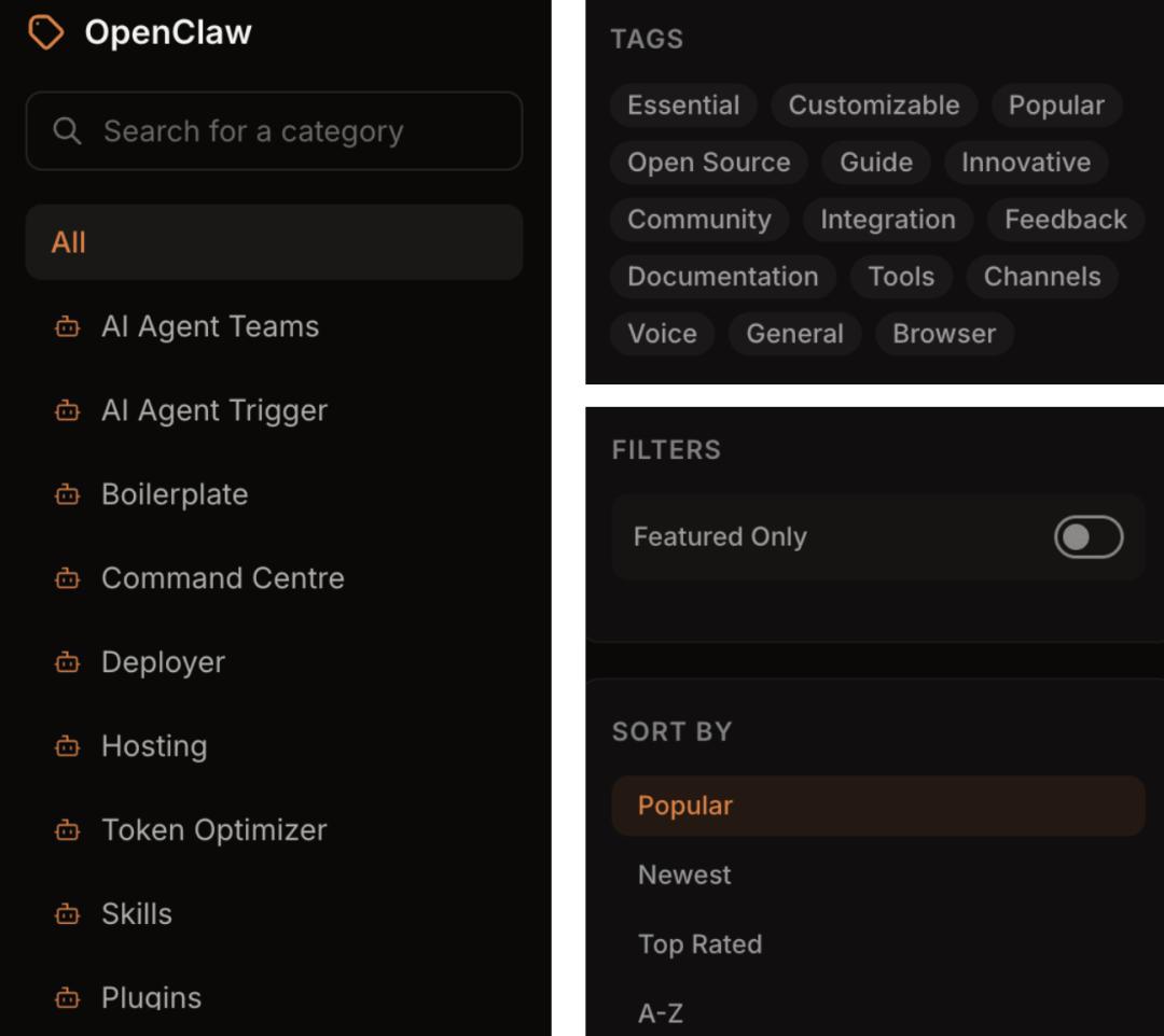 话不多说,一起来看这个目录里列举的最受欢迎的OpenClaw工具都有哪些。