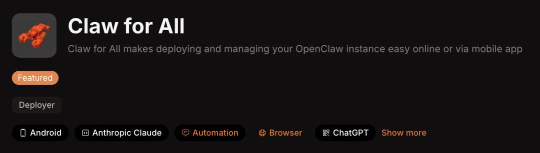 简介介绍,Claw for All是一款面向开发者以及普通用户的主打简化OpenClaw部署与管理流程的工具平台,支持在线端和移动应用双端访问。