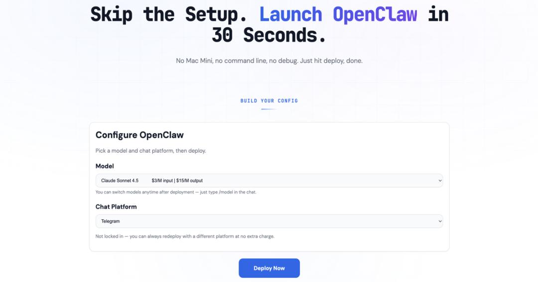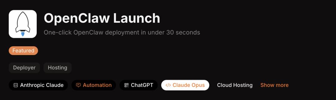 OpenClaw Launch同样是一款部署类工具,主打极速、30秒内完成OpenClaw应用的一键部署:
