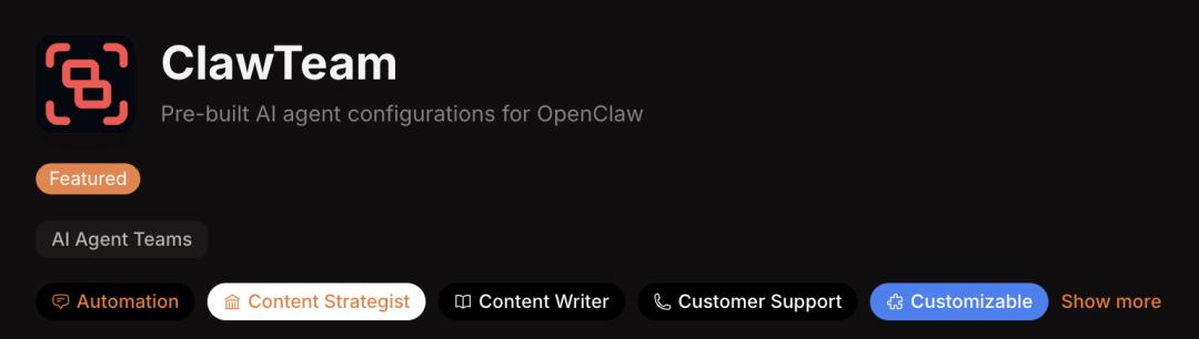 ClawTeam提供专为OpenClaw打造的预制智能体配置方案,核心功能有: