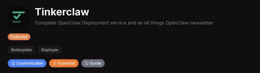 关于Tinkerclaw的介绍比较详细。据称,这是一款一站式服务平台,旨在帮助创业者与团队零技术门槛地部署、管理并扩展其OpenClaw AI助手。