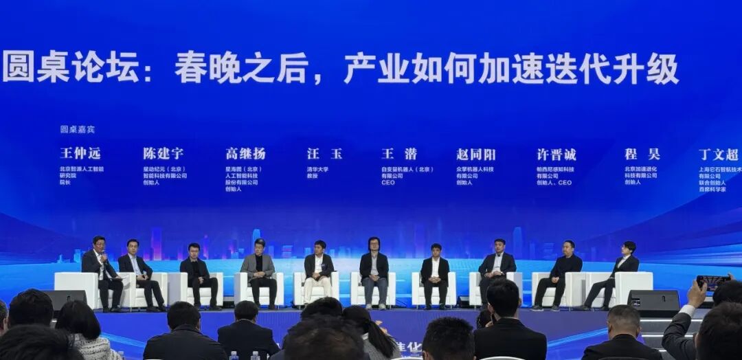 智源研究院院长王仲远、星动纪元创始人陈建宇、星海图创始人高继扬、清华大学教授汪玉、自变量机器人创始人王潜、众擎机器人创始人赵同阳、帕西尼创始人许晋诚、加速进化创始人程昊,以及它石智航首席科学家丁文超。