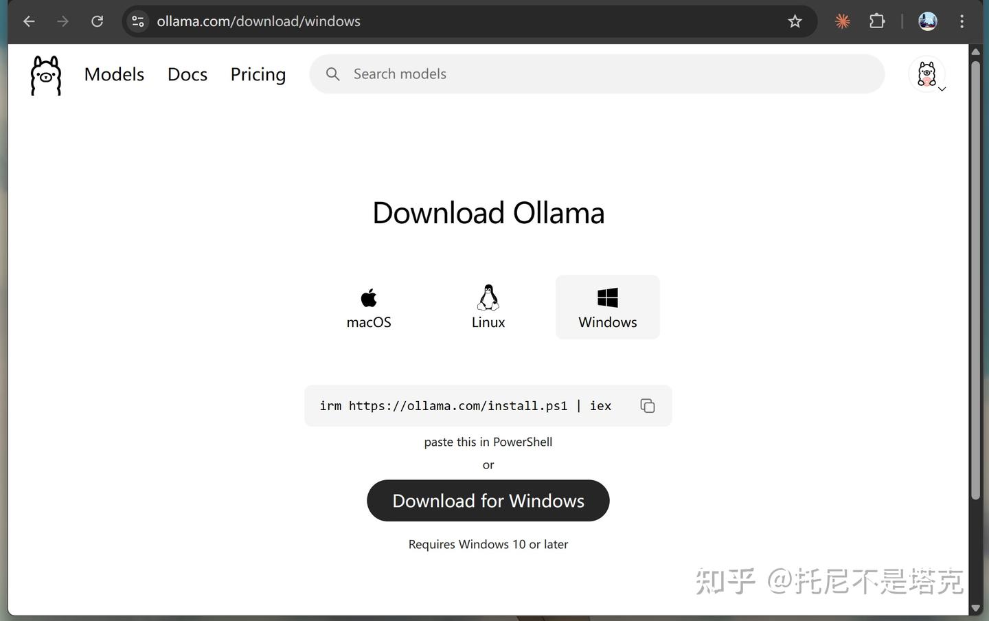 我们首先需要下载 Ollama 这个软件,下载和安装软件非常简单。