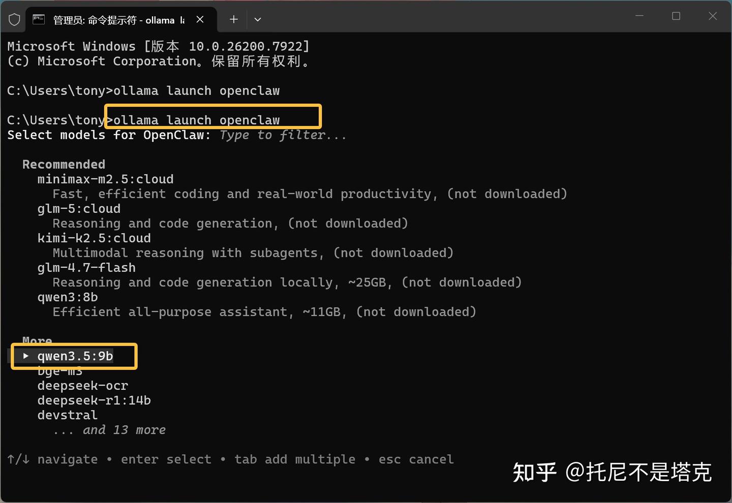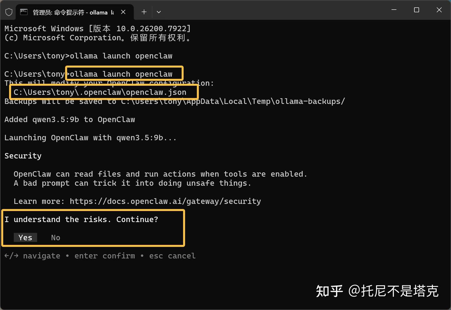 然后就可以使用 ollama launch 来直接运行 OpenClaw 了。