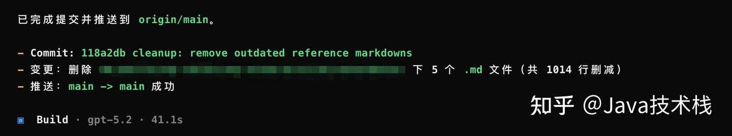 一句话就提交代码了,都不用自己想提交说明了,提交说明是和当前的变更文件是一致的,但是提交说明是英文的,有需要可以自己修改下 Skill 代码来实现中文提交说明。