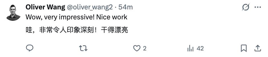 Uni-1发布后评论一片叫好,甚至引来谷歌DeepMind首席科学家、Nano Banana项目技术负责人Oliver Wang点赞: