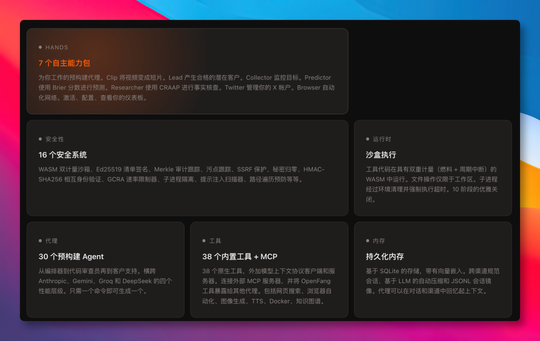 总的来说,OpenFang 在自主性和安全性之间做了较好的平衡,把约束体系直接建进架构里,而不是事后打补丁。