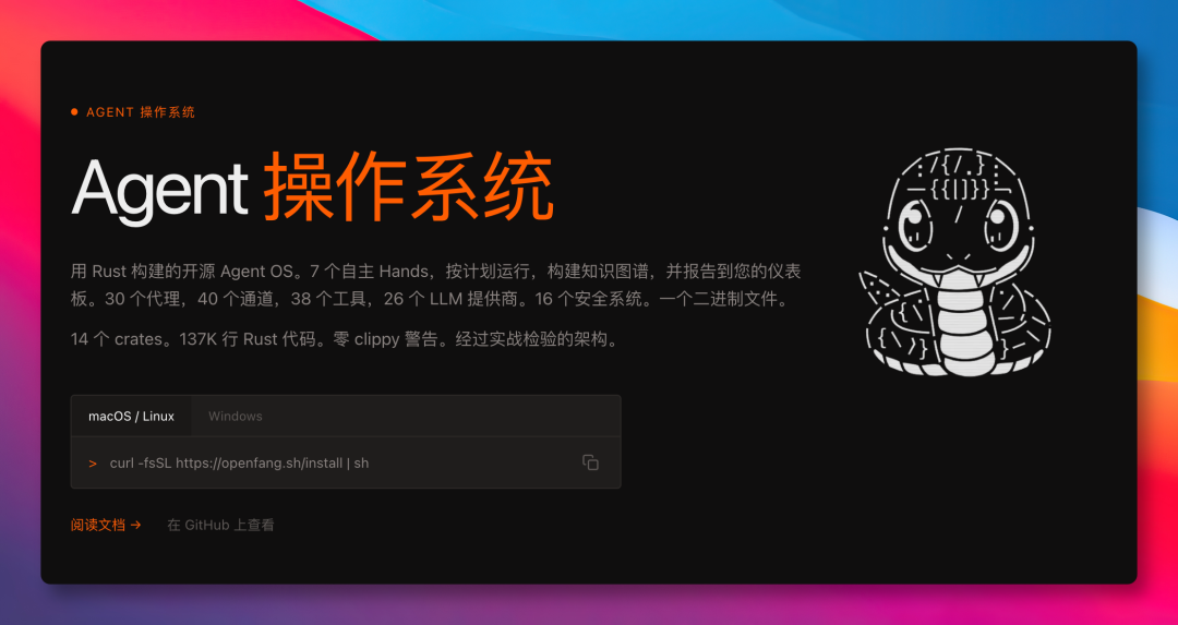 这刚过完春节,OpenFang 它就来了,用 Rust 构建生产级的 Agent 操作系统,刚开源就暴涨 2700+ Star。