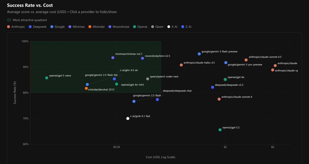 而PinchBench要做的,就是直接告诉你答案——它按照成功率、速度、价格这三个基本维度对全球模型进行排名,所以哪个模型更擅长什么基本都一目了然。