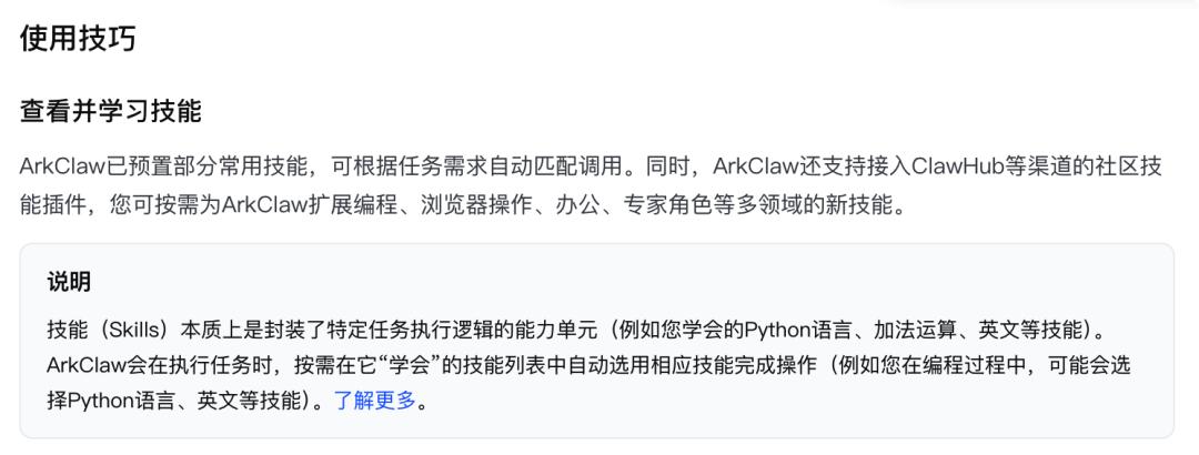 不得不说,ArkClaw 的接入文档(点击文末阅读原文即可查看)写得很详细: