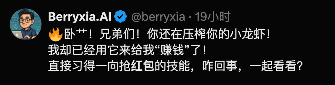 我已经用龙虾来给我赚钱了。